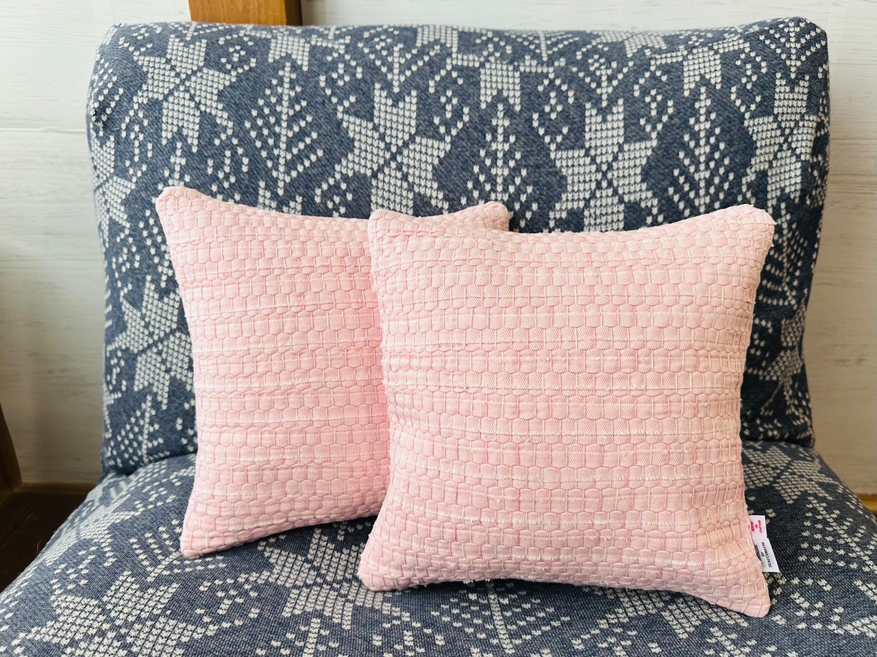 Scaccomattoクッション『Piccolo・ベイビーピンク』は、ベビーピンクのカツラギ生地をグラデーションあるピンクベースのレース糸(綿100%)で編み込んでいます。ベビーピンクのカラーリングが、お部屋に優しいアクセントをプラス。遊び心溢れるチェス盤のような模様が楽しいアクセントとなっています。インテリアのおしゃれと快適性を両立させたい方におすすめです。